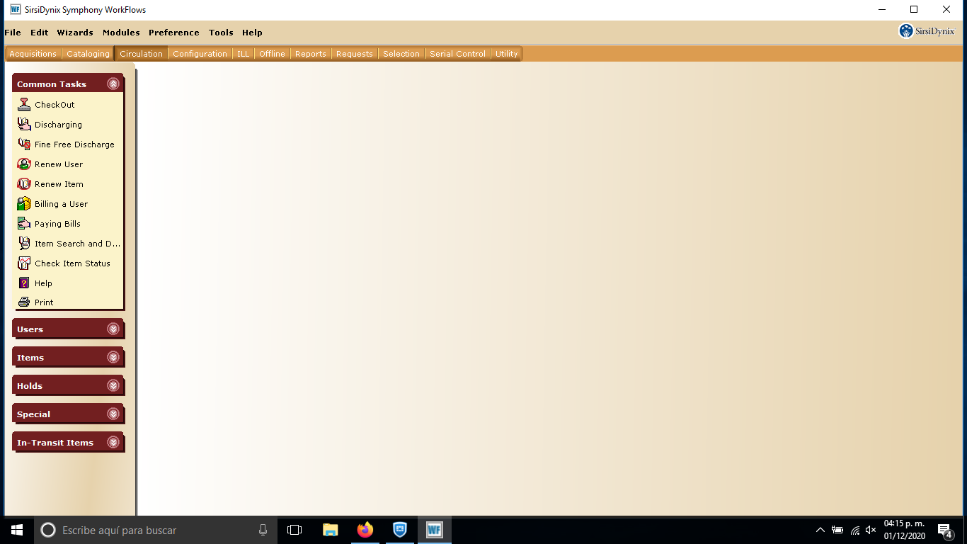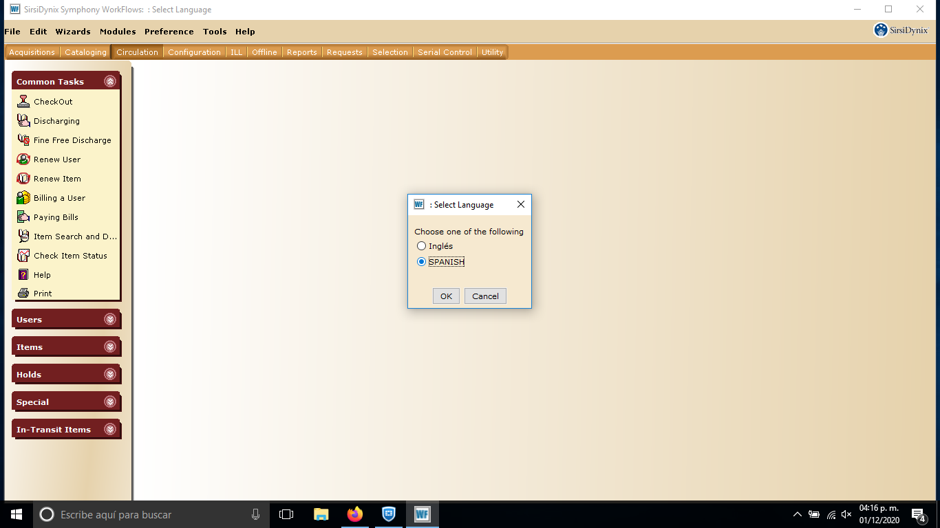 - Al iniciar sesión el sistena se muestra por defecto en idioma ingles, el primer
