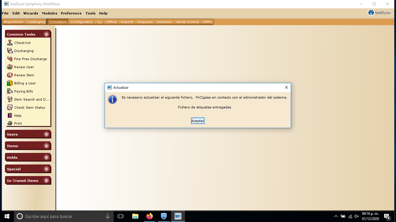 ventanas que notifican estos cambios, haga click en "Aceptar".