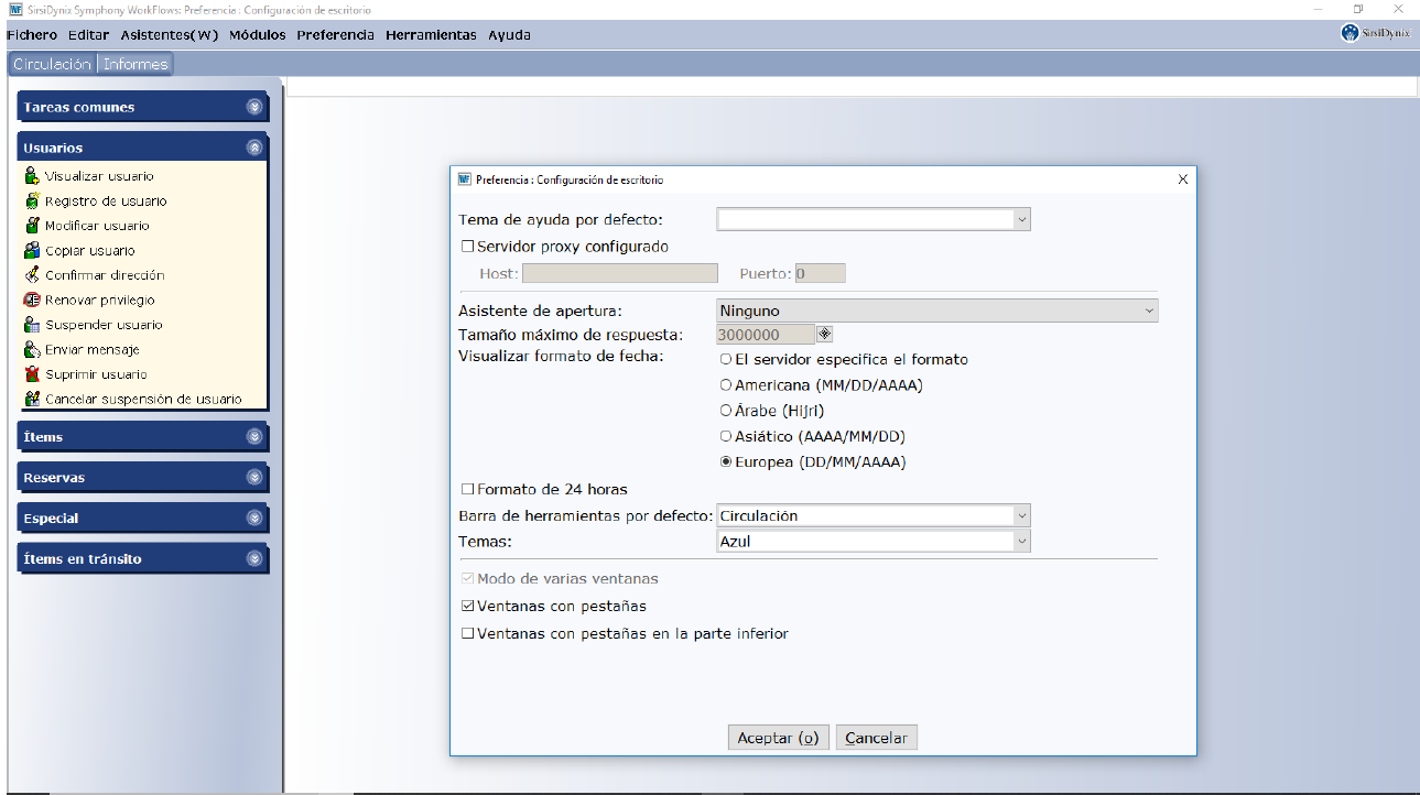 - En el parámetro "Visualizar Formato de Fecha" seleccione la opción "Europea". Haga click en el botón "Aceptar"
