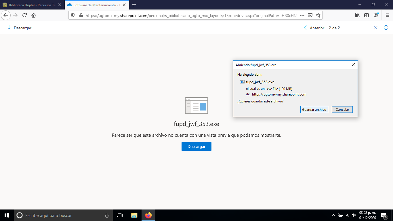 - Descargar el archivo instalador (fupd_jwf-353.exe) desde el siguiente link: Ir